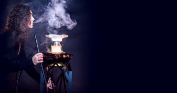 Try also with the backlighting of the vase itself. The glow of light emanating from the base of the shisha all the way to the top creates an enchanting play of light and shadow. Illuminated wavy maps in the glass are projected onto the porcelain body, adding a poetically visual touch to your experience.