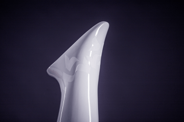 The body of Anima BLUE is made of hand-cast porcelain and finished with an innovative vacuum chamber application of titanium to a platinum colour. The surface finish is hard, high gloss, and very modern-looking.