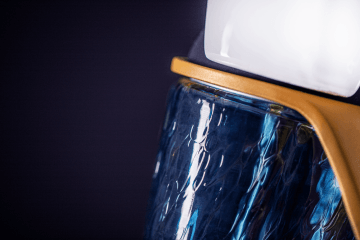 The Anima PREMIUM WHITE hookah is unmistakable with its glossy white body with a matte Anima pattern that is deeply sandblasted into snow white porcelain. Anima PREMIUM WHITE stands out with its minimalist design that creates an impression of elegance and purity. The glass of the hookah is made of small coloured fragments that are handmelted into wooden molds. These fragments, in shades of blue and gold, are applied by hand to each vase, ensuring that each Anima PREMIUM WHITE hookah vase is completely unique.